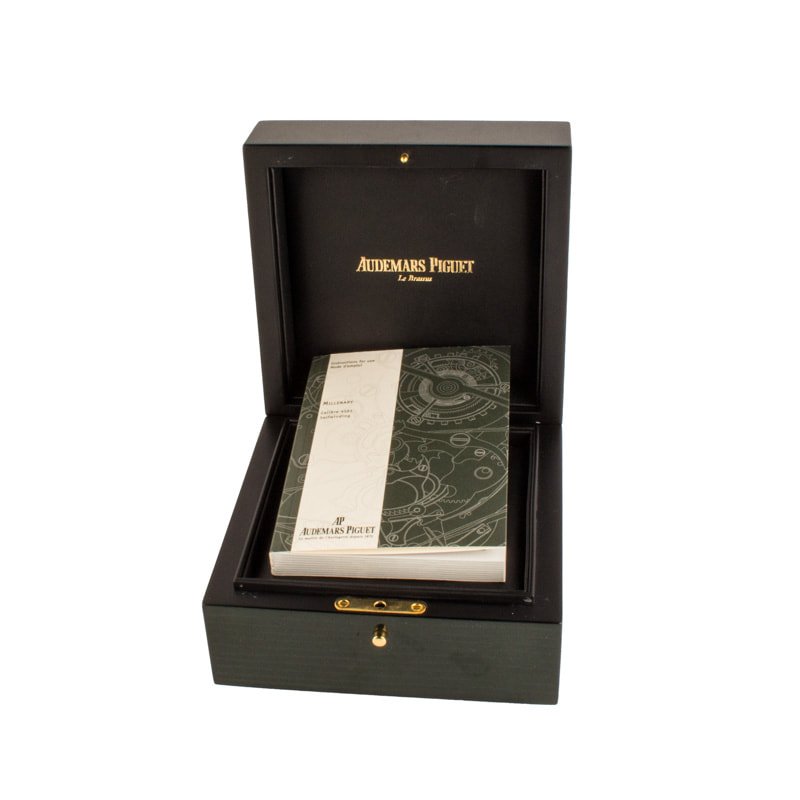 This pre-owned Audemars Piguet Millenary 4101 ref. 15350ST.OO.D002CR.01 (2013–2015) is a true showcase of horological artistry. Its captivating skeleton dial reveals the intricate mechanics of the self-winding Calibre 4101, perfectly aligned with the off-centered time display to create a bold sense of depth and balance. The open-worked design lets you admire the heartbeat of the movement from every angle—a striking fusion of technical mastery and avant-garde style that only Audemars Piguet could achieve.
