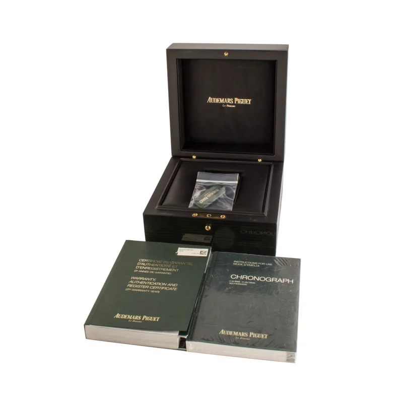 * All Pre-Owned Audemars Piguet watches are guaranteed to be 100% genuine and certified authentic. Certificates are issued by Watch CSA, the industry’s leading independent authority on watch authentication. Watch CSA Certified Pre-Owned certificates are provided for an additional fee at checkout. All watches are shipped to fit the average size wrist (7 1/4″ – 7 1/2″ for men and 6 1/4″ – 6 1/2″ for women). Additional links can be purchased if needed. Note that “B&P” means “box and papers” where stated.