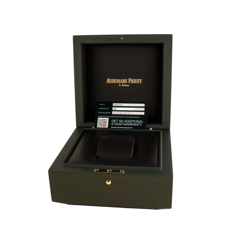 Pre-owned Audemars Piguet Royal Oak Offshore Ref 26238CD.OO.1300CD.01 introduces a striking new chapter in the Offshore story with its full “Bleu Nuit, Nuage 50” ceramic construction, a rich, deep blue tone drawn from the night skies above the Vallée de Joux. The 42mm case, bezel, and integrated bracelet are all crafted from ceramic, contrasted beautifully by stainless steel hexagonal screws and a titanium caseback. The signature “Méga Tapisserie” dial mirrors the same midnight hue, paired with matching sub-dials, luminescent white gold hands, and hour markers for legibility and cohesion. Inside the case, the self-winding caliber 4404 delivers flyback chronograph functionality, a 70-hour power reserve, and impeccable finishing, which we can admire in all their glory through the sapphire caseback. This monochromatic AP combines avant-garde materials, heritage design, and an unmistakably modern aesthetic.