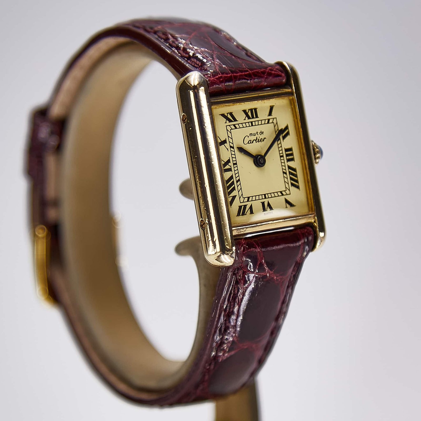 The Cartier Tank Must Vermeil emerged in the late 1970s as part of Cartier’s effort to make the iconic Tank design more accessible without sacrificing its elegance. Introduced under the “Les Must de Cartier” line, these models used gold-plated sterling silver (vermeil) cases and a variety of dial styles—from minimalist lacquered designs to more traditional Roman numeral layouts. The collection quickly became a success, offering the unmistakable Tank silhouette at a more approachable price point while helping Cartier reach a broader audience during a period of renewed brand energy. Over time, the Tank Must Vermeil earned a loyal following, and today it’s appreciated for its blend of classic Cartier charm, playful design variations, and the important role it played in bringing the Tank into a new era of popularity.