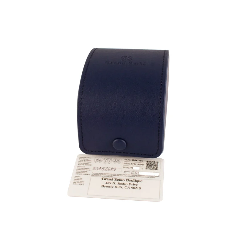 Pre-owned Grand Seiko Heritage Collection ref SBGX355 (2025) illustrates the quieter side of modern Grand Seiko, where precision and restraint do the talking. The snow-white dial is inspired by windswept winter scenes near the Shinshu Watch Studio, with a finely textured surface that feels calm at first glance and increasingly detailed the longer you study it. A deep blue second hand cuts cleanly across the dial, adding just enough contrast without disturbing the watch’s serene character. The case is sized at a very wearable 37mm and is crafted from Grand Seiko’s high-intensity titanium, making the watch noticeably lighter on the wrist while offering greater scratch resistance than standard titanium. Inside is one of Grand Seiko’s highly accurate quartz movements for everyday reliability.