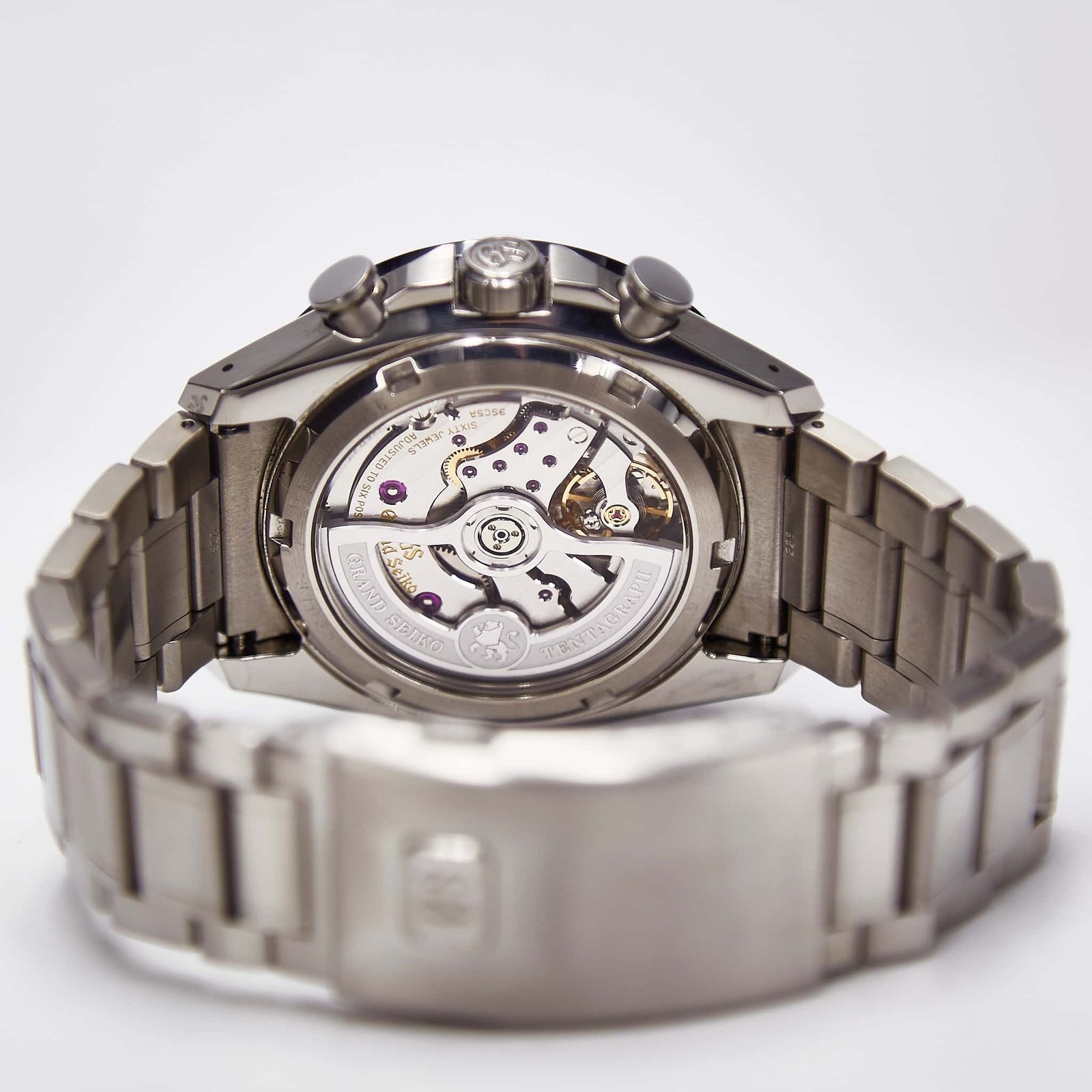 At its heart is the in-house Caliber 9SC5, built on the 9SA5 platform—running at 5 Hz (36,000 vph)—and thanks to a Dual Impulse Escapement plus twin barrels, it delivers a full 72-hour power reserve even with the chronograph running. This made it the longest-running 10-beat chronograph in the industry at the time of release. The movement incorporates a vertical clutch and column wheel, with meticulous finishing visible through the exhibition caseback.