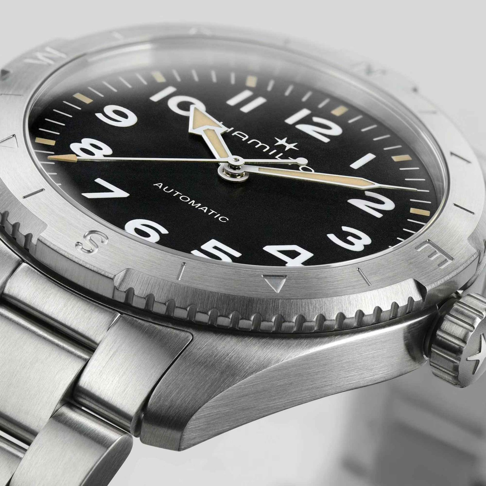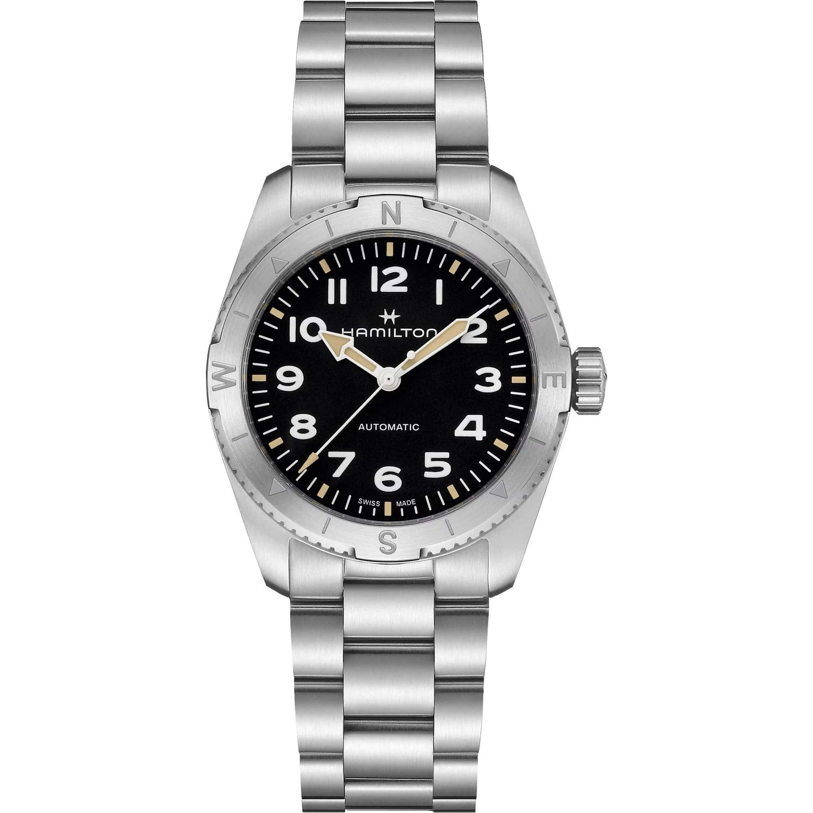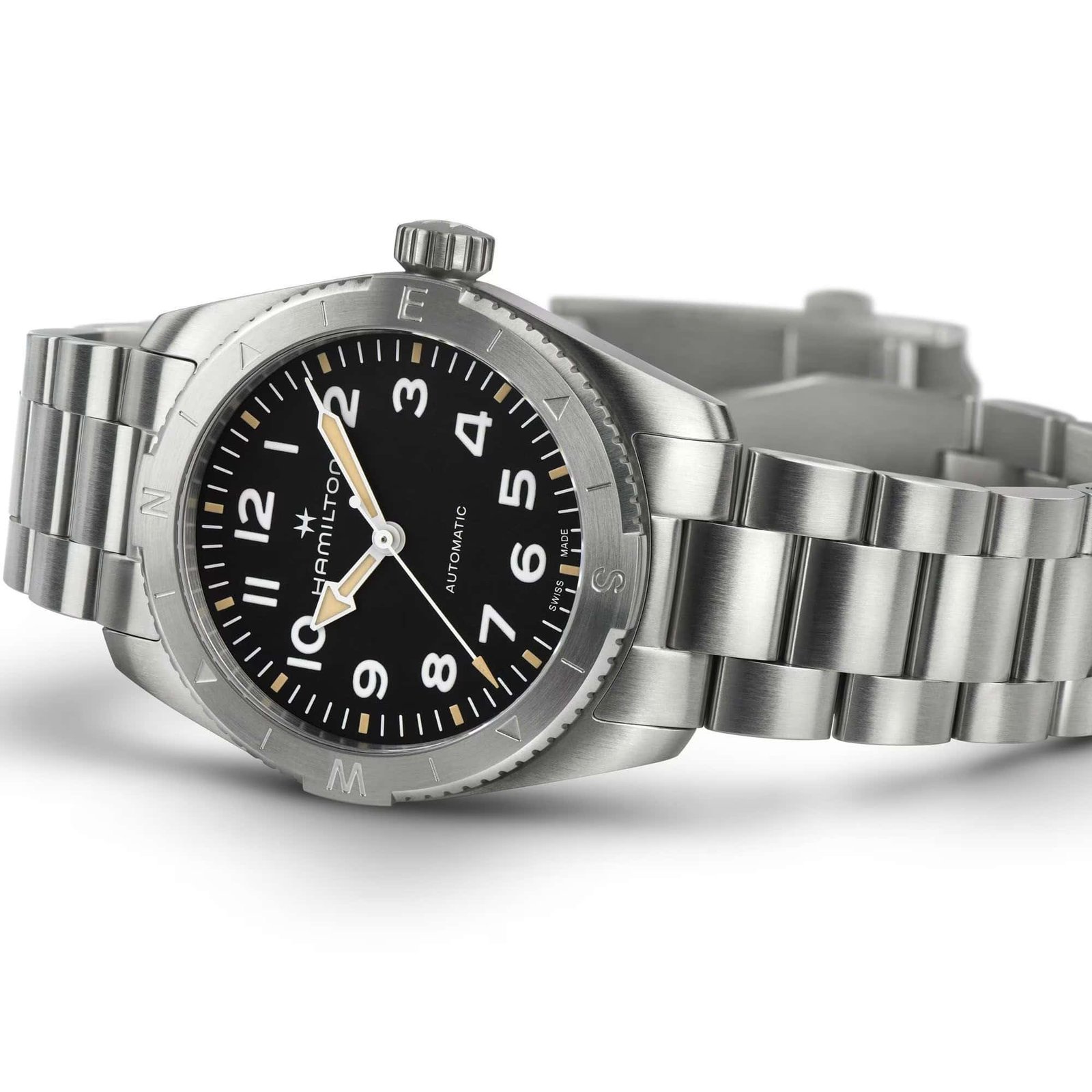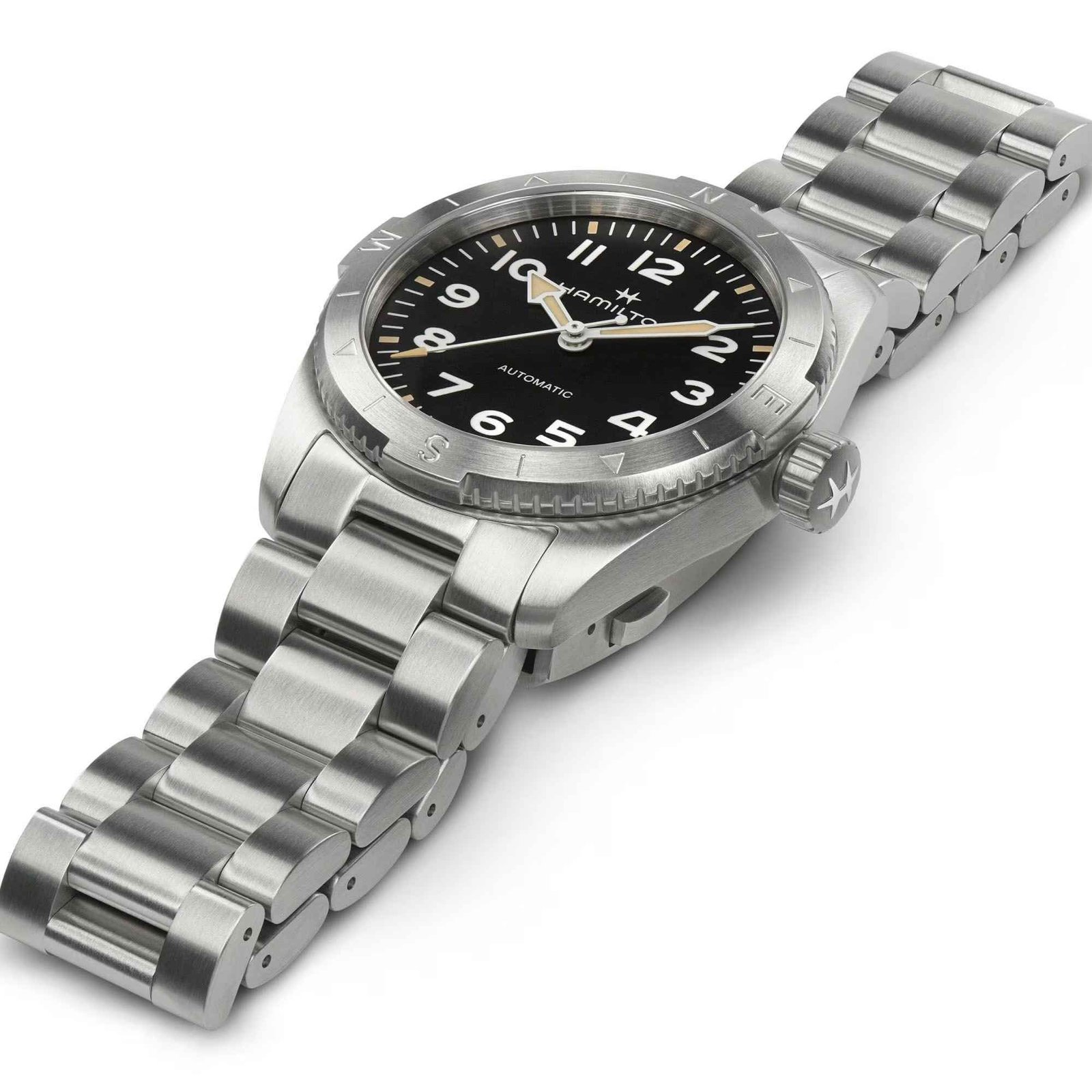 Gear up for the great outdoors with the Khaki Field Expedition, an all-terrain adventure watch with a compass design enabling you to navigate your adventure with the help of the sun. Housed in a 37mm stainless steel case paired with a matching bracelet, it is equipped with a screw-down crown to protect the movement no matter the weather. Featuring a black textured dial with Super-LumiNova coating for ultimate legibility, the Khaki Field Expedition is tough when you need it.