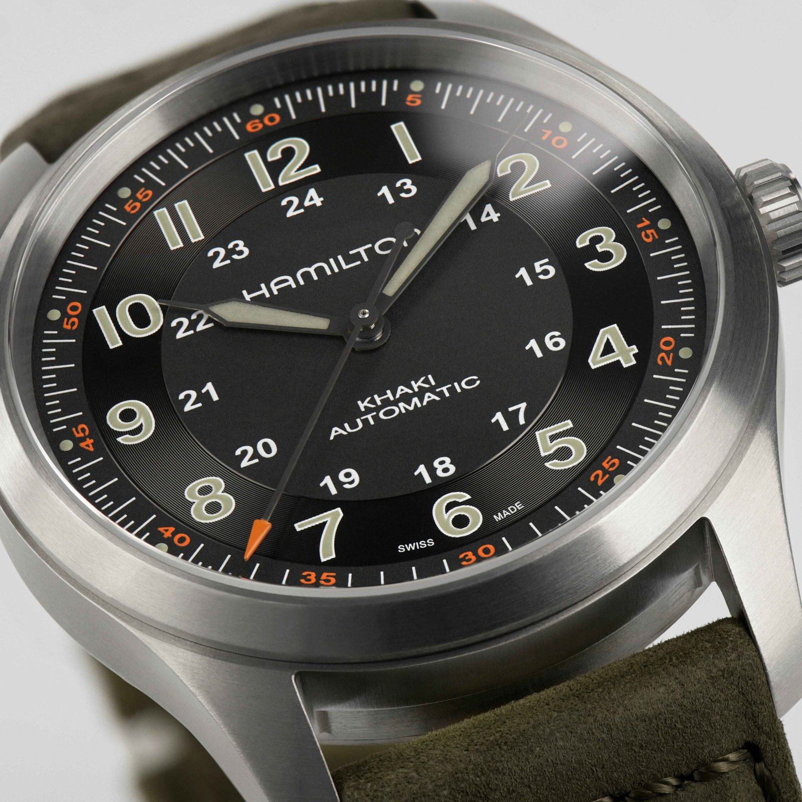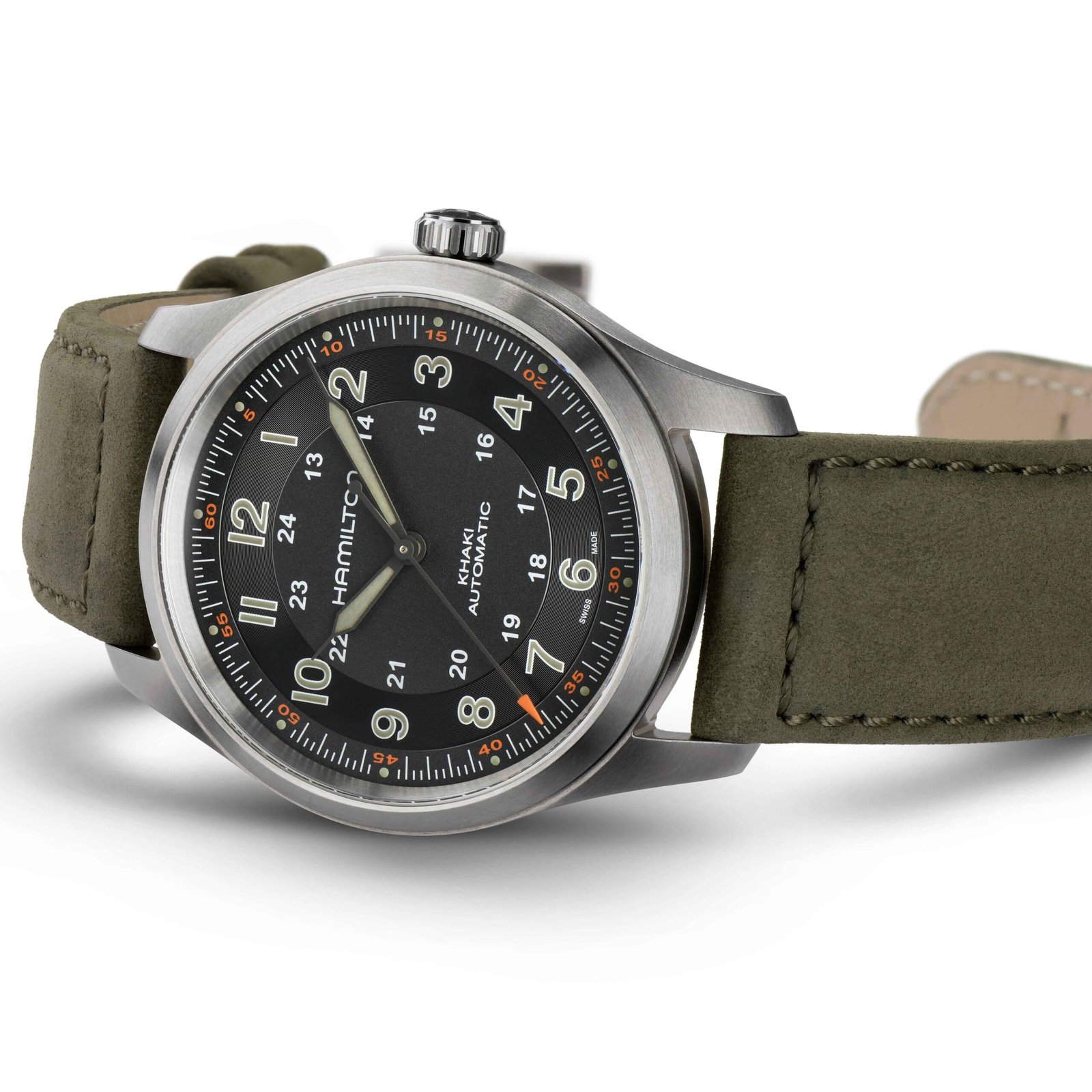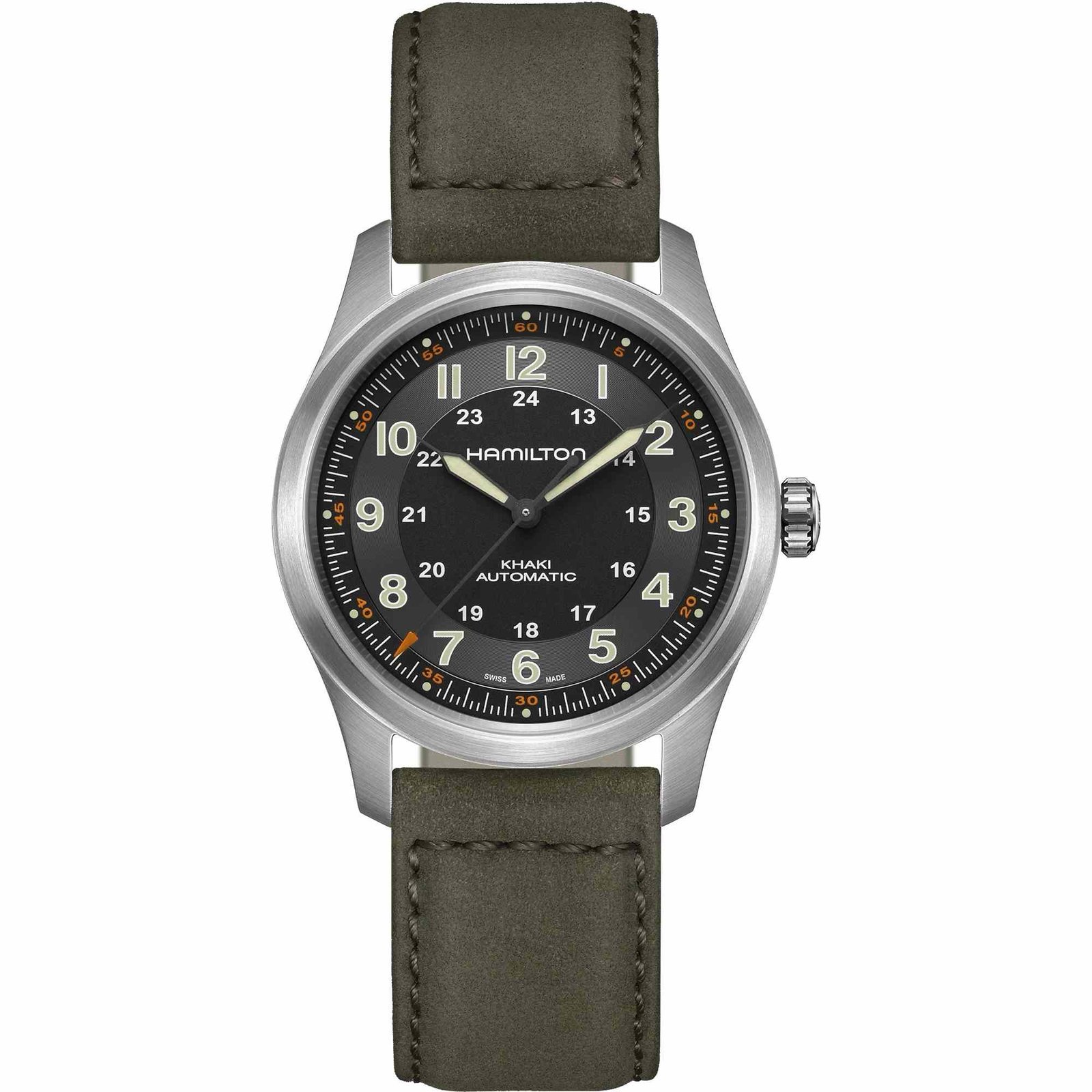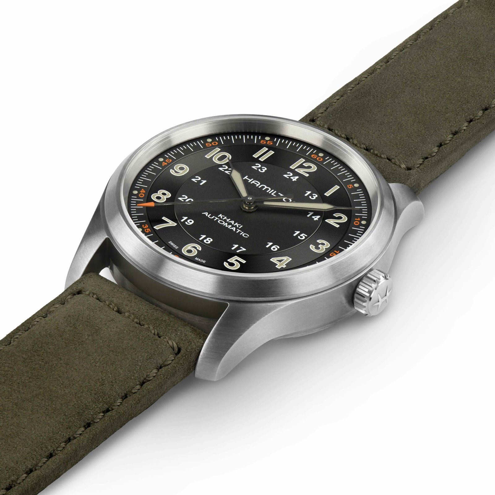 A century-long pedigree in military timepieces combined with lightweight materials make the Khaki Field Titanium Automatic the ultimate all-purpose watch for modern heroes. Truly fit for life in the field, the 38mm case size accentuates comfort and adaptability with a historically authentic design.