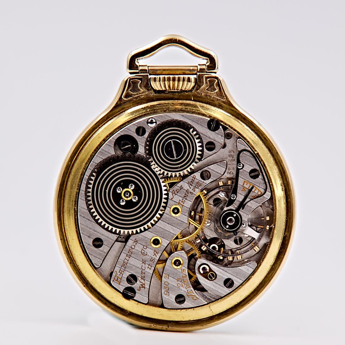One of their earliest accomplishments was creating precision Hamilton pocket watches for the railroad. These timepieces are still sought after by collectors for their beautiful workmanship, precise time keeping and historical significance. During World War I, Hamilton supplied watches to the U.S. military, which became a catalyst for shifting from pocket watches to wrist watches. Following shortly after the end of the war, Hamilton watches accompanied the first U.S. Airmail in a flight between Washington D.C. and New York City. It is no wonder that Admiral Byrd carried a Hamilton pocket watch when he became the first aviator to reach the North Pole. Ever since, Hamilton has been associated with pilots and aviation. With World War II, Hamilton again met the challenge by supplying over one million watches to the troops. Perhaps because of their reputation for rugged reliability and their widespread use, it was natural that Hamilton would make their way to Hollywood, where they appeared in several films, further establishing their connection with Americana.