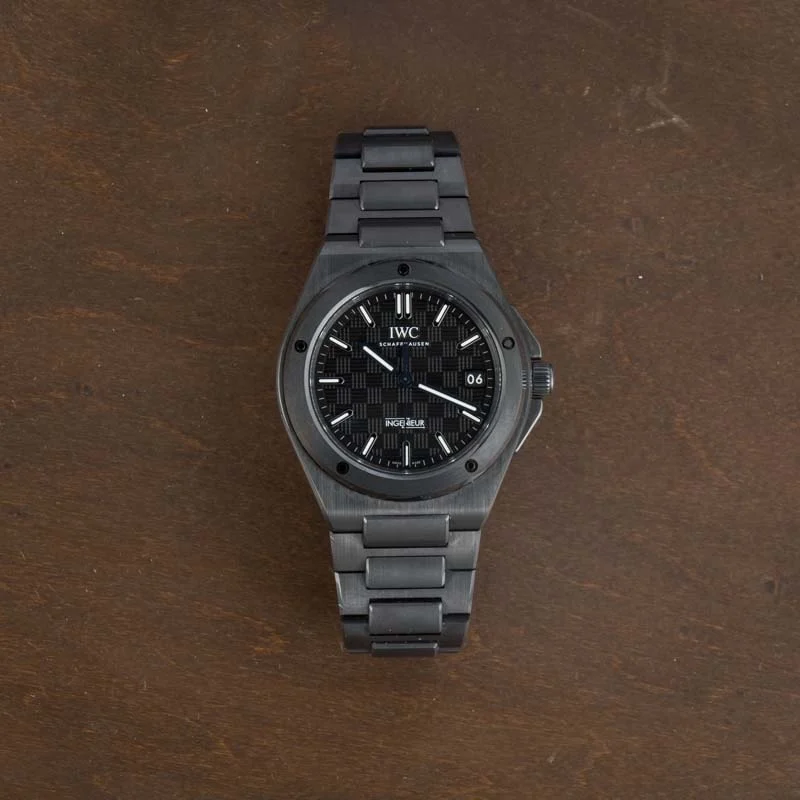 Pre-owned IWC Ingenieur Automatic 42 ref IW338903 (2025) brings IWC’s Genta-era design language into a modern format, this time with a full black ceramic case that feels both architectural and effortless on the wrist. At 42mm, it has the familiar integrated-bracelet silhouette many collectors are after, but the ceramic finish gives it a sleek, almost tactile presence that’s surprisingly lightweight. The black textured dial plays nicely with the case material, catching light just enough to show off its depth without overtaking the wrist. Inside is an IWC-manufactured automatic movement, keeping the watch firmly in the “premium sports watch” conversation. It’s a sharp option if you appreciate Genta design but want something with a more contemporary attitude.