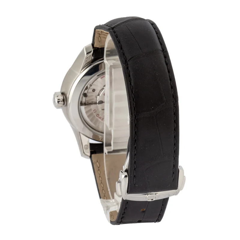 Pre-owned Omega De Ville ref 431.13.41.21.01.001 (2012). The De Ville is about as classic and timeless as it gets in the broader Omega catalog. We can see this watch on the wrist today and decades from now because its design codes never really go out of style. Thanks to Omega’s innovative watchmaking technologies, it will always read true as well. This model is a sleek steel-and-black Omega. The 41mm case is made of durable steel and features a scratch-resistant sapphire crystal and a 100-meter water-resistant crown. Inside is a sharp black “two-zone” dial with a slight step around the edge to frame the elegant silvered Roman numeral hour markers. The date sits neatly at 3 o’clock. This model is powered by the Co-Axial caliber 8500.