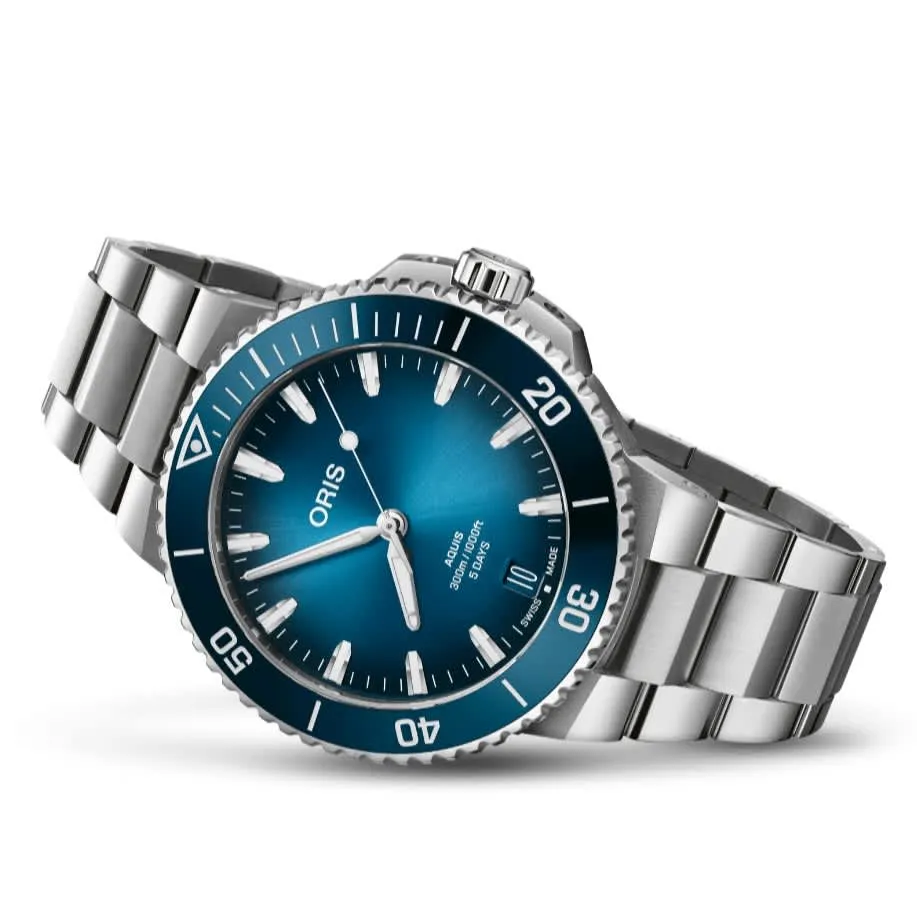 New Oris 43.5mm Aquis Date Caliber 400, Blue Dial, Stainless Steel Bracelet, Ref. 01 400 7790 4135