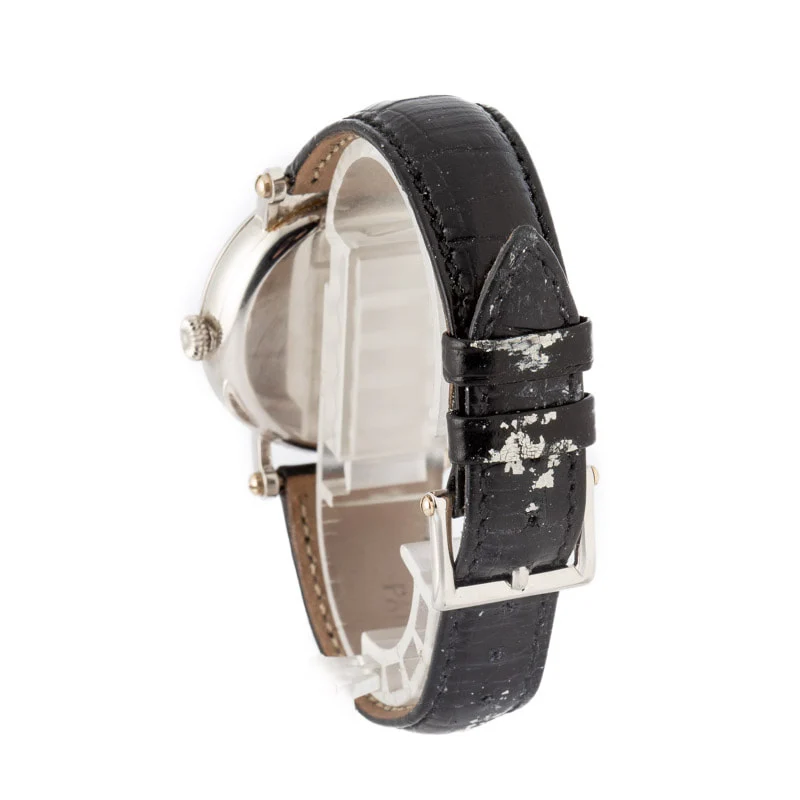 Pre-owned Patek Philippe Complications ref 5015P “Age of the Moon” is a quietly poetic expression of Patek Philippe’s approach to haute horology. Housed in a 36mm platinum case, the watch carries an understated presence, with precious weight felt more than seen. A delicate beaded-style bezel frames the dial, while refined shoulder lugs add architectural character without distracting from the composition. Paired with a leather strap, the overall effect is elegant, restrained, and unmistakably Patek. The dial is where this watch truly distinguishes itself. At 7 o’clock sits a beautifully rendered moon phase, accompanied by AM/PM indicators that subtly track the passage of day and night. A power reserve indicator and small seconds complete the layout, arranged with balance and intention rather than excess. Powering the watch is the caliber 240, Patek Philippe’s ultra-thin, micro-rotor movement. Thoughtful in scale, rich in detail, and deeply classical in spirit, the ref. 5015P is horology at its most cerebral and graceful.