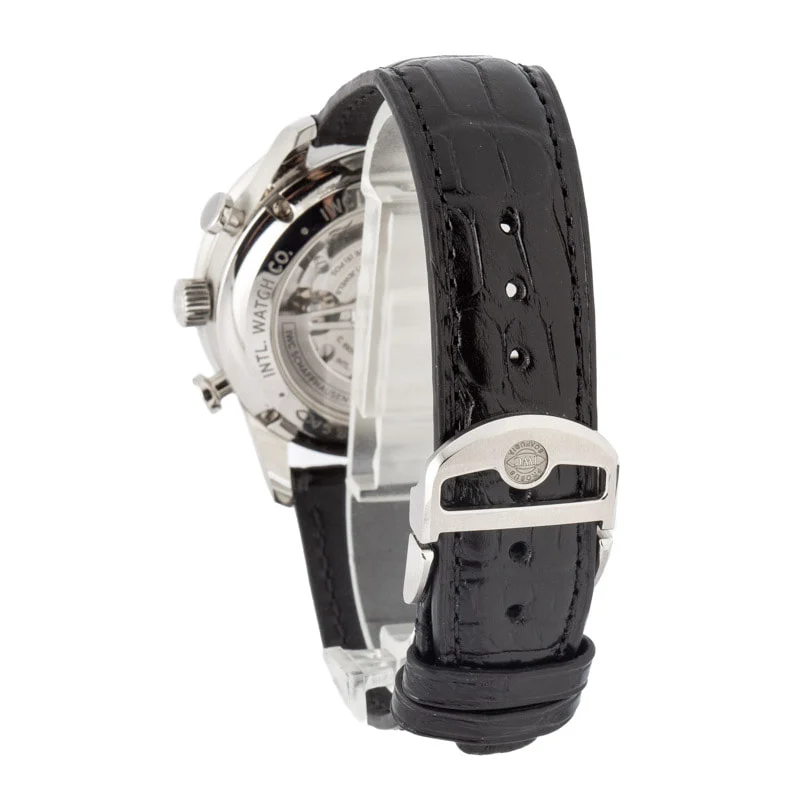 * All Pre-Owned IWC watches are guaranteed to be 100% genuine and certified authentic. Certificates are issued by Watch CSA, the industry’s leading independent authority on watch authentication. Watch CSA Certified Pre-Owned certificates are provided for an additional fee at checkout. All watches are shipped to fit the average size wrist (7 1/4″ – 7 1/2″ for men and 6 1/4″ – 6 1/2″ for women). Additional links can be purchased if needed. Note that “B&P” means “box and papers” where stated.