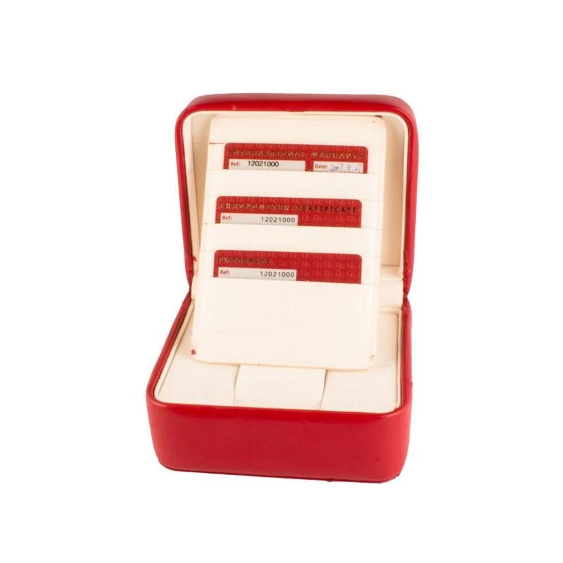 * All Pre-Owned OMEGA watches are guaranteed to be 100% genuine and certified authentic. Certificates are issued by Watch CSA, the industry’s leading independent authority on watch authentication. Watch CSA Certified Pre-Owned certificates are provided for an additional fee at checkout. All watches are shipped to fit the average size wrist (7 1/4″ – 7 1/2″ for men and 6 1/4″ – 6 1/2″ for women). Additional links can be purchased if needed. Note that “B&P” means “box and papers” where stated.