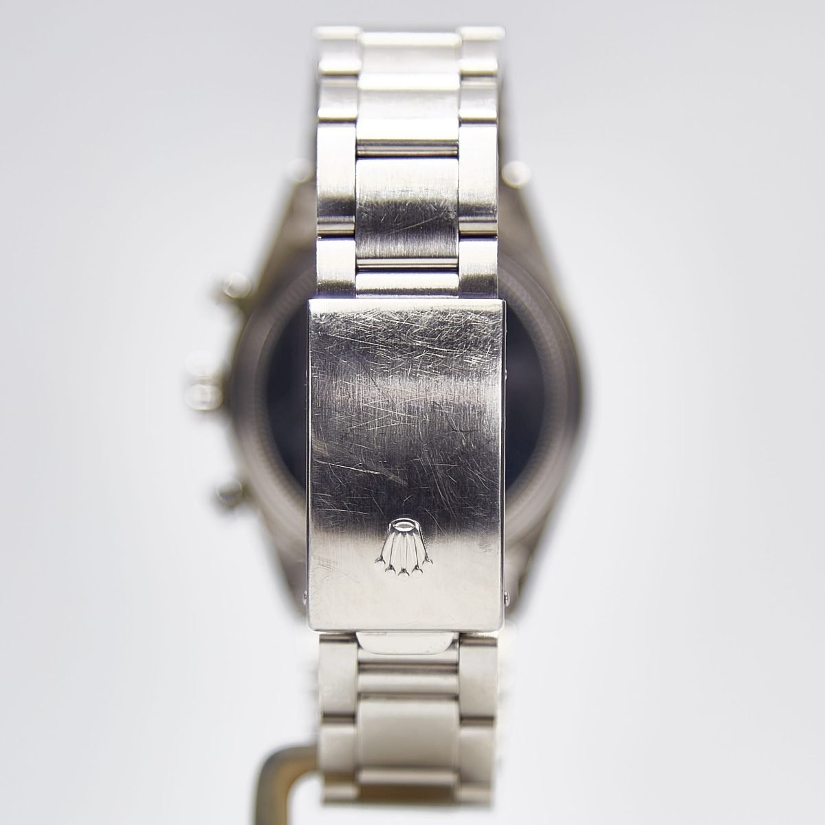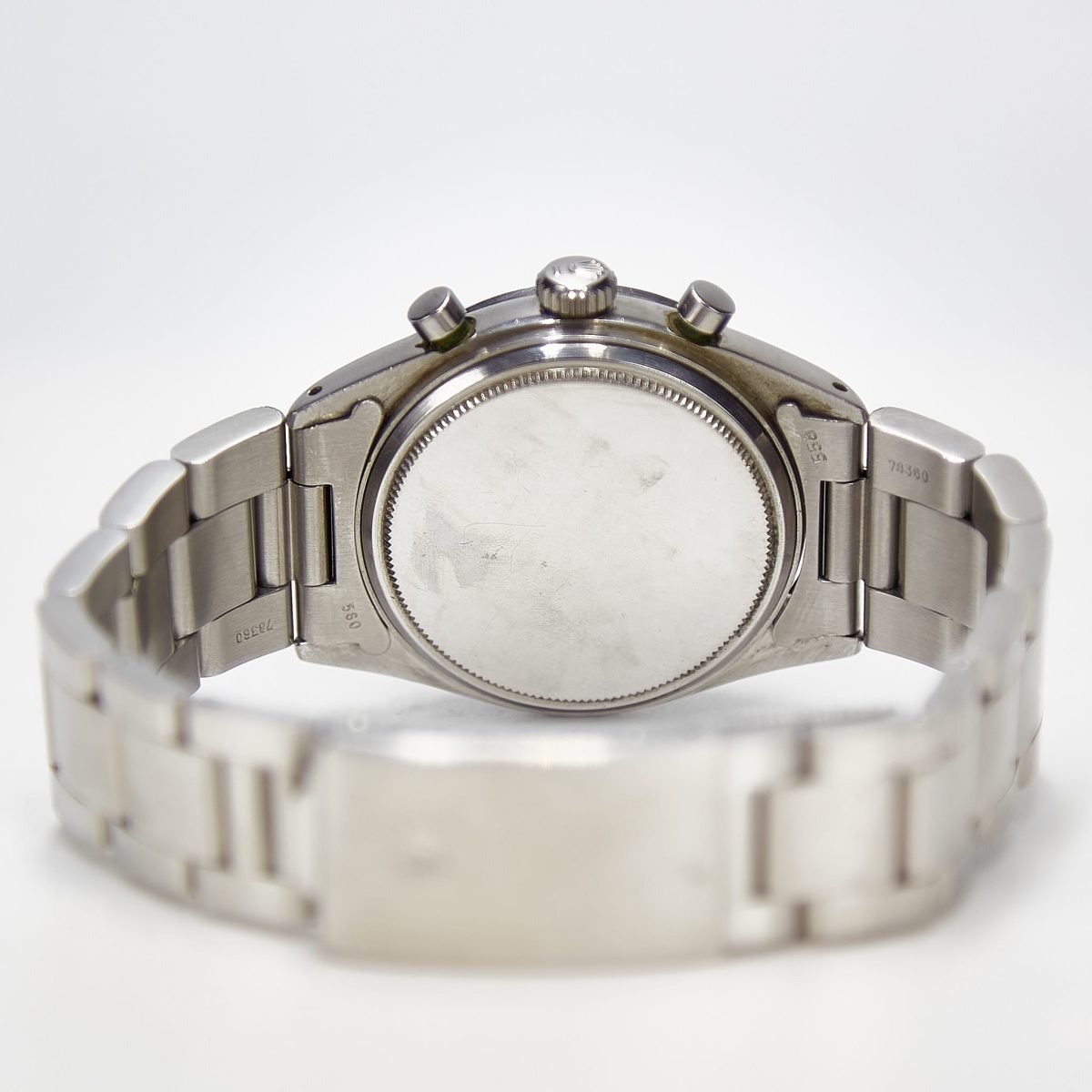 The movement is a manual winding caliber 722, which is based on a Valjoux 72 movement. The Valjoux movements were responsible for powering some of the greatest names in watchmaking, including Patek, Audemars, and Breguet. The Valjoux movement is considered robust and very reliable. The watch presented here from circa 1965 is an excellent example with a flawless dial. The case, bezel, pushers and crown are all in remarkable condition. The attached Oyster bracelet from a later year is also in excellent condition. The Rolex Daytona is a beautiful watch with a well-earned reputation. Without diminishing it in any way, the pre-Daytona is a special watch in its own right, a seldom seen watch that demonstrates the wearers appreciation of the finest that Rolex had to offer.