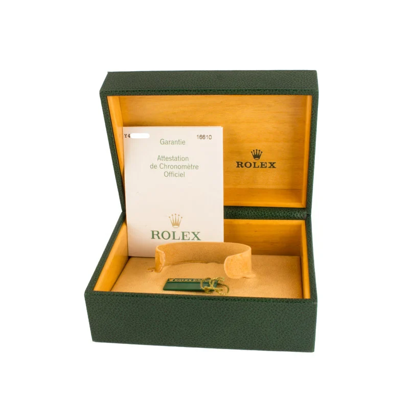 Pre-owned Rolex Submariner ref 16610 (2001 – 2002) is a fixture of countless watch collections, and for a good reason. It’s iconic, wearable, and functional. The original model was released to the market in the early 1950s. At the time of its debut, the Sub was the first timepiece within the Rolex catalog to offer water-resistance up to 330 feet. Today, the depth rating has increased to up to 1,000 feet. The modern collection also includes a uni-directional bezel mounting, lumed plots in white gold surrounds, and a higher-beat movement. The result is a dive watch that doubles as a fashion-forward luxury wristwatch that nearly every collector desires. Discover additional timepieces for sale by visiting the Rolex 16610 page.