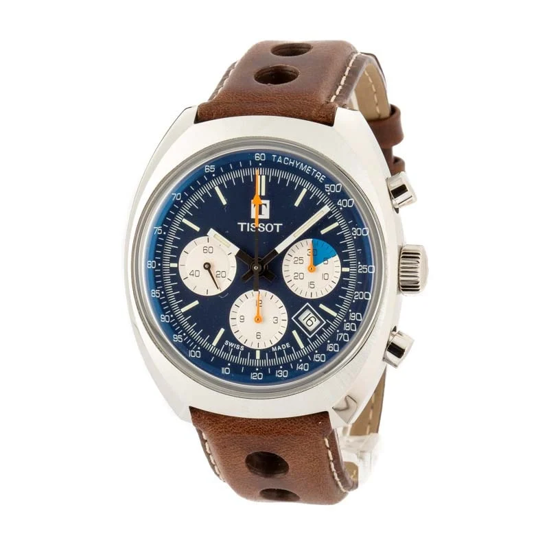 Pre-owned/unworn Tissot Heritage 1973 ref T124.427.16.041.00 is a stunning reissue of a classic 1970s chronograph that honors Tissot’s deep ties to motor racing. This timepiece, limited to just 1,973 pieces, features a 43mm stainless steel case and a vintage-inspired design that recalls the era’s racing spirit. The watch’s overstitched calfskin strap, a modern reproduction of Tissot’s patented 1960s design, showcases large perforations reminiscent of vintage pilots’ steering wheels. Powered by the reliable ETA Valjoux 7753 automatic movement, it ensures precision and performance. This unworn pre-owned model offers a rare opportunity to own a piece of Tissot’s legacy, perfect for both collectors and enthusiasts. A true blend of heritage and contemporary craftsmanship.