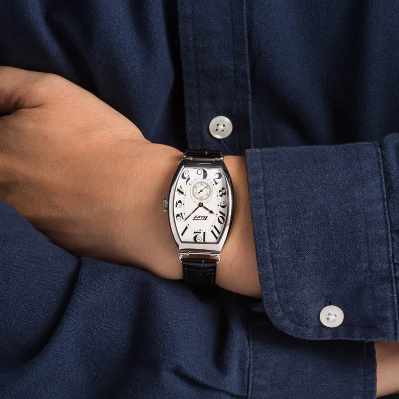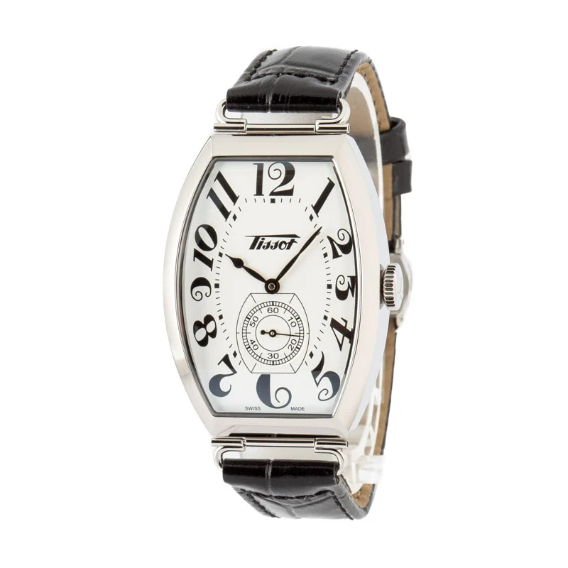 This pre-owned/unworn Tissot Heritage Porto Manual Wind ref T128.505.16.012.00 is a stunning tribute to Art Nouveau design. Its unique 42mm tonneau-shaped case, vintage-inspired dial, and manual-wind movement make it a refined blend of history and elegance.