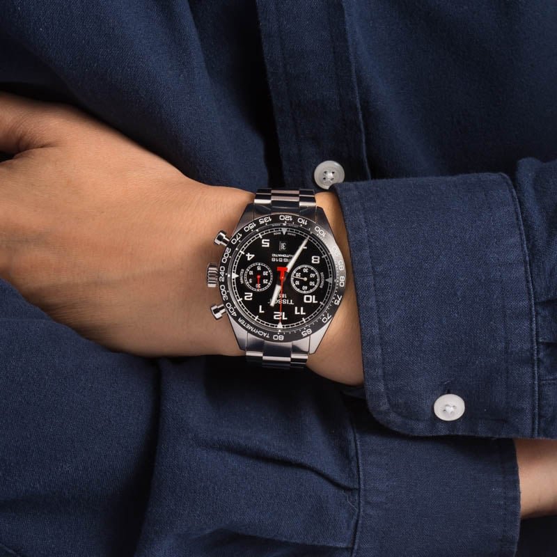 Pre-owned/unworn Tissot PRS 516 Automatic Chronograph ref T131.627.11.052.00 will appeal to anyone in the market for an affordable, Swiss-made chronograph with an automatic caliber and classic styling. The collection was released in 1965, taking much of its inspiration from classic sports cars at the time; most notable on this model are the piston-shaped pushers. Other features include a black dial decorated with Super-LumiNova, an interchangeable quick release bracelet with a butterfly clasp, a domed sapphire crystal, a black Tachymeter bezel, and a self-winding mechanical movement with a 60-hour power reserve. This model is in stock now in UNWORN secondhand condition.