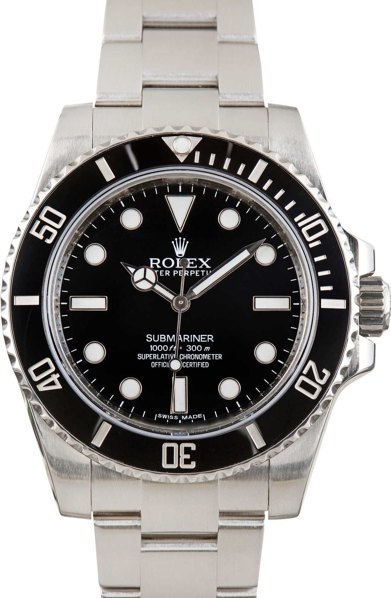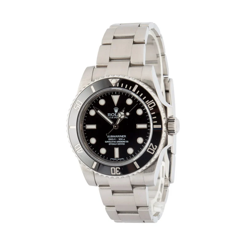Pre-owned Rolex Submariner ref 114060 (2012 – 2020) recently discontinued model is the watch to buy if you’re searching for a timepiece that will hold its value. It has an enduring and incredibly functional design set and a singularly reliable movement, many hallmarks of a lifelong luxury watch. Ref. 114060 was the first time-only (aka “No Date”) Sub to sport a stainless steel finish and a ceramic bezel. It follows a similar design code to the inaugural 1950s model with a dateless dial, black bezel, and stainless steel finish. At the same time, it also houses a modern, COSC-rated mechanical movement and boasts newer materials, such as scratch-resistant sapphire, Chromalight, 904L-grade Oystersteel, and ceramic.