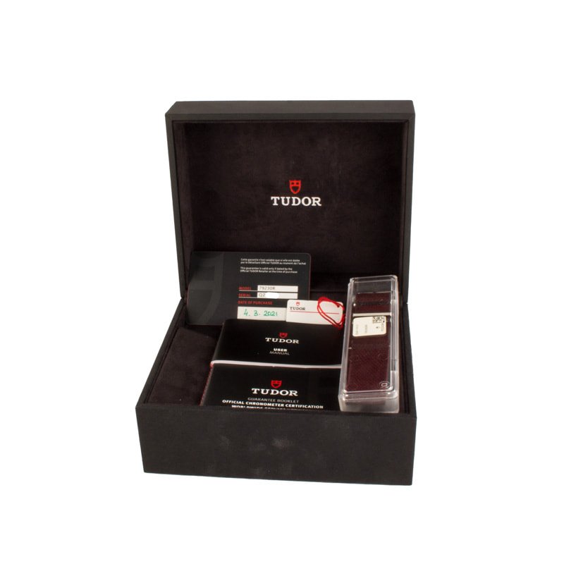 Pre-owned Tudor Black Bay ref 79230R (2021) is the version that marked Tudor’s shift from vintage tribute to fully modern contender. When it replaced the earlier ETA-powered Black Bay in 2015, this reference brought serious upgrades while keeping the retro dive aesthetic that made the collection explode in popularity. The 41mm steel case has real presence at 14.5mm thick, with clean case lines and a solid, tool-watch feel. The red aluminum bezel, with its deep burgundy tone collectors love, adds warmth to the black dial and gilt accents. Snowflake hands, oversized crown, domed crystal, the design language pulls straight from Tudor’s mid-century dive history, but it doesn’t feel fragile or nostalgic on the wrist. Inside is the in-house caliber MT5602, a COSC-certified movement with a 70-hour power reserve. That was the big moment for Tudor. Longer autonomy, chronometer precision, and a movement made specifically for the brand. It instantly elevated the Black Bay from “great value alternative” to something standing firmly on its own.