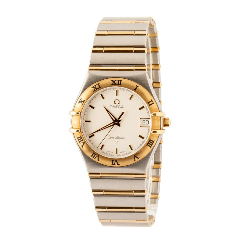 Used Two Tone Omega Constellation Silver Textured Dial