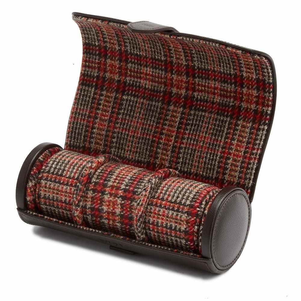 The WM Brown Watch Roll with Cigar Case is handcrafted in classic smooth brown leather and Negroni tweed lining. Patented Watch Guards keep your timepieces protected while traveling.